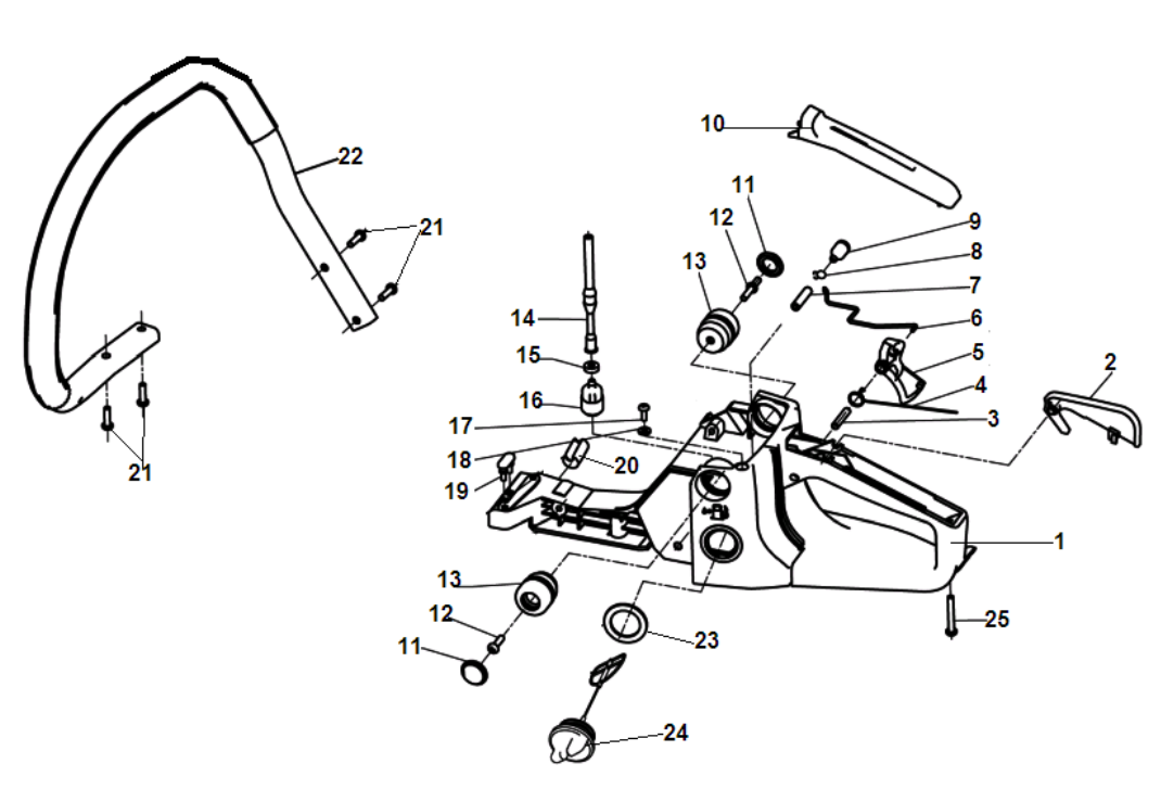 3 БАК - АМОРТИЗАТОР - ПРОБКА | Запчасти для бензопилы чемпион 245 | Поставка по России | Магазин-Сервис в СПБ |