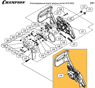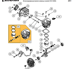 7 | Запчасти для бензопилы чемпион 251 | обновлённая деталировка после 15.01.2023 года | СТАРТЕР |