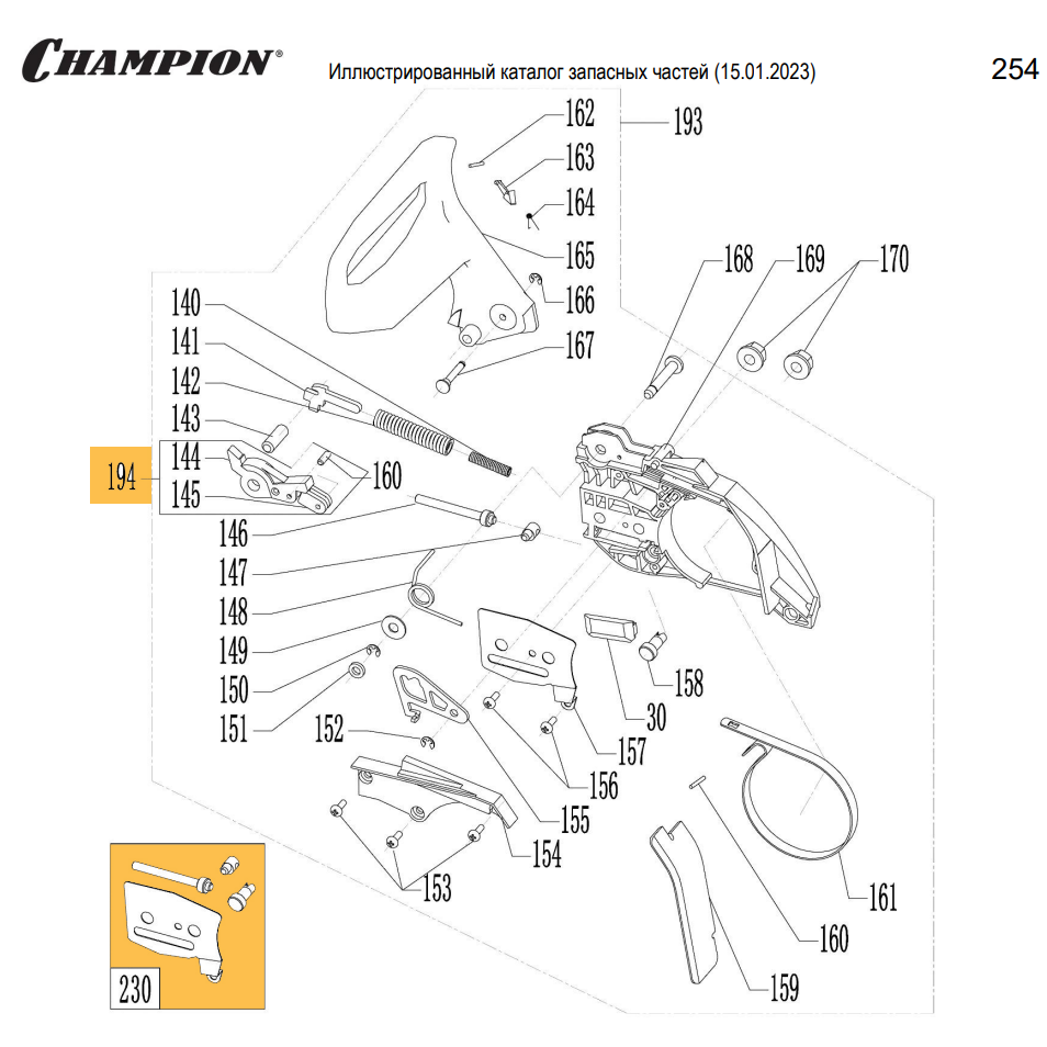 8 | Запчасти для бензопилы чемпион 254 | обновлённая деталировка после 15.01.2023 года | ТОРМОЗ ЦЕПИ | Поставка по России | Магазин-Сервис в СПБ |