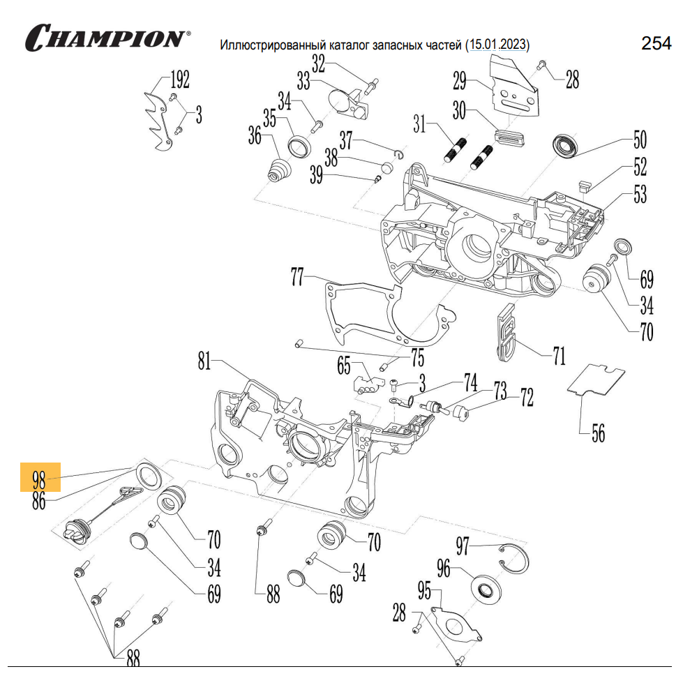 2 | Запчасти для бензопилы чемпион 254 | обновлённая деталировка после 15.01.2023 года | КАРТЕР Поставка по России | Магазин-Сервис в СПБ |