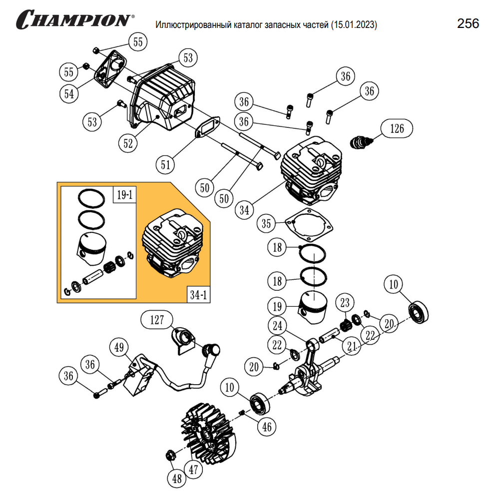 1 | Запчасти для бензопилы чемпион 256 | обновлённая деталировка после 15.01.2023 года | ПОРШЕНЬ - ЦИЛИНДР - СВЕЧА - МАХОВИК - МАГНЕТО | Поставка по России | Магазин-Сервис в СПБ |