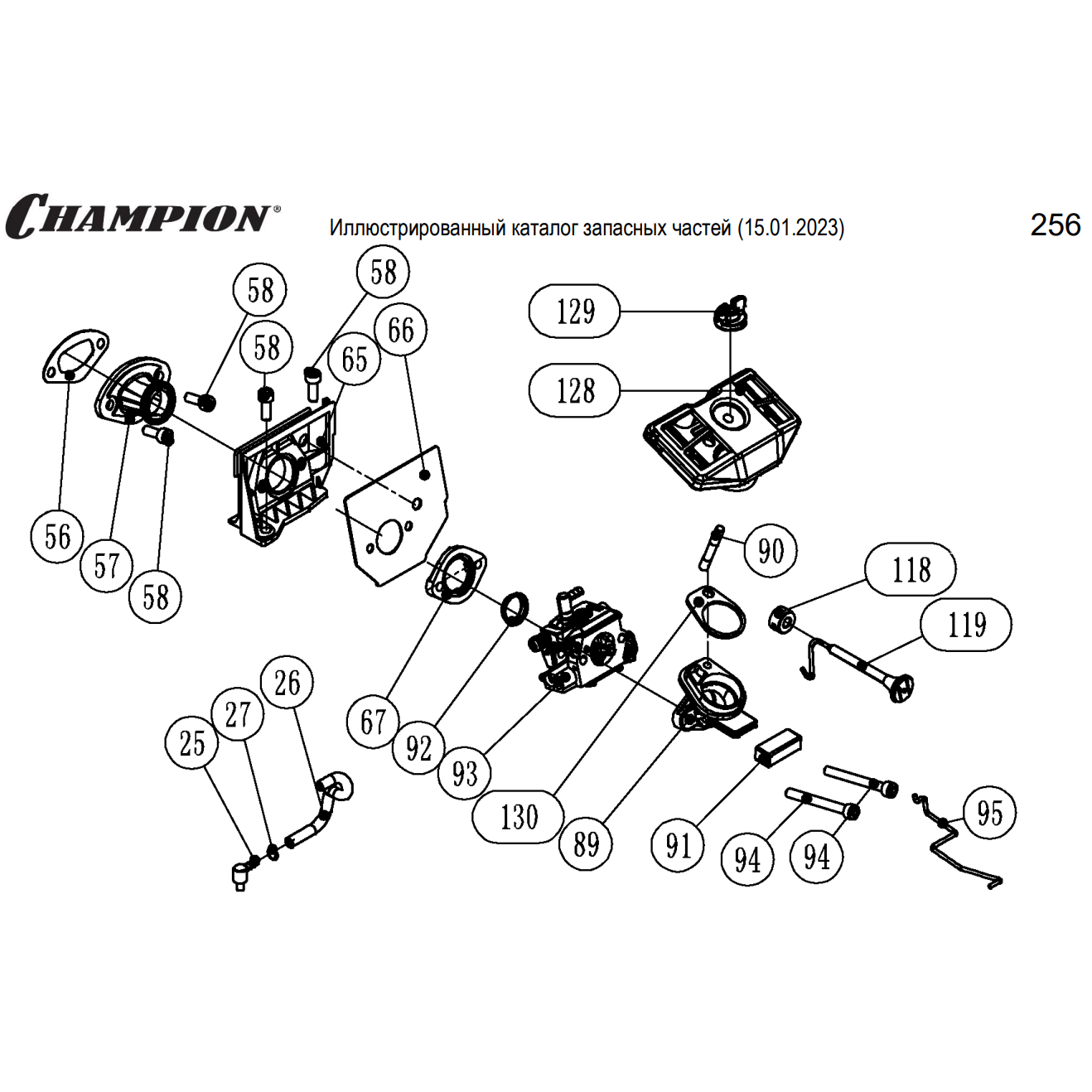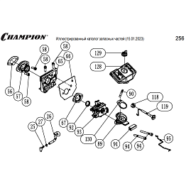 4 | Запчасти для бензопилы чемпион 256 | обновлённая деталировка после 15.01.2023 года | КАРБЮРАТОР - ФИЛЬТР | Поставка по России | Магазин-Сервис в СПБ |