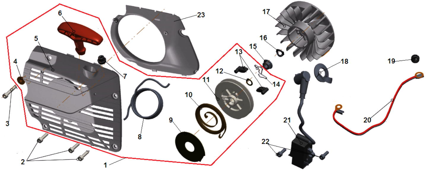 2 СТАРТЕР - МАХОВИК - МАГНЕТО | Запчасти для бензопилы чемпион 265 | Поставка по России | Магазин-Сервис в СПБ |