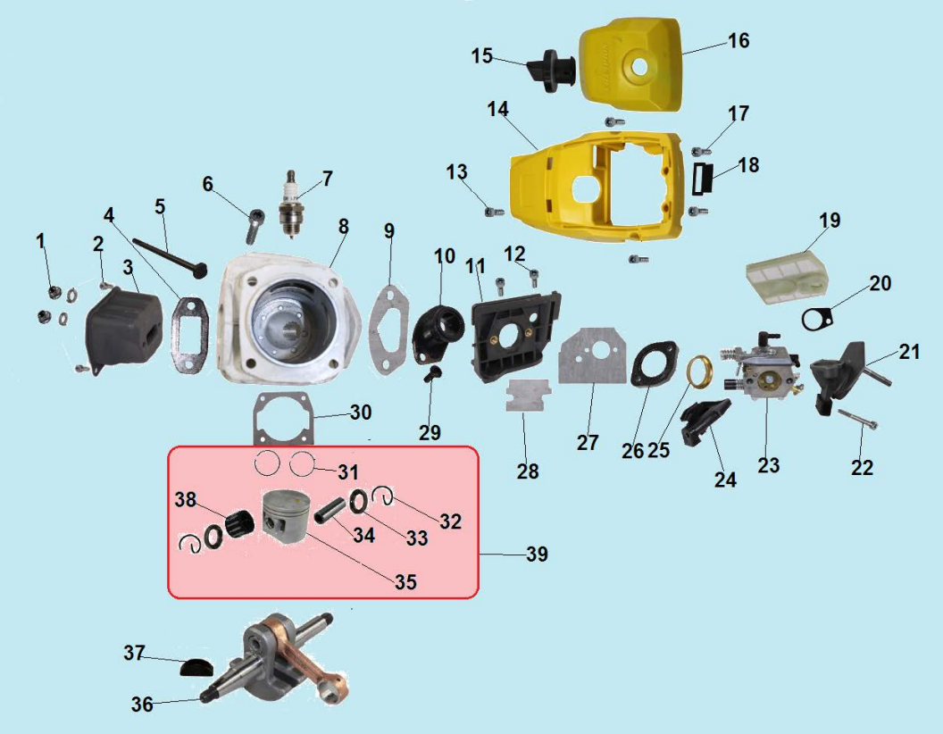 1 ПОРШЕНЬ - ЦИЛИНДР - СВЕЧА - КАРБЮРАТОР - ФИЛЬТР - КОЛЕНВАЛ | Запчасти для бензопилы чемпион 362 | Поставка по России | Магазин-Сервис в СПБ |