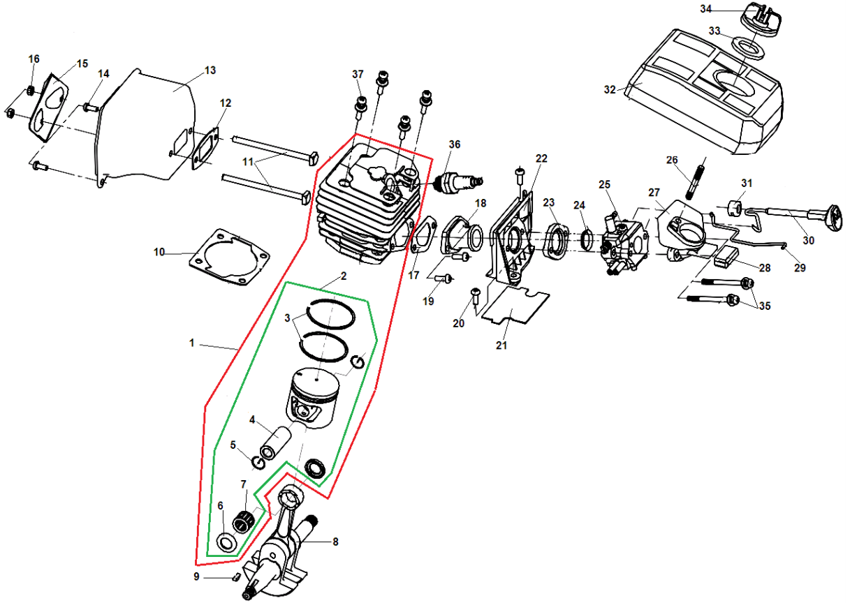 1 ПОРШЕНЬ - ЦИЛИНДР - СВЕЧА - КАРБЮРАТОР - ФИЛЬТР - КОЛЕНВАЛ | Запчасти для бензопилы чемпион 55 | Поставка по России | Магазин-Сервис в СПБ |