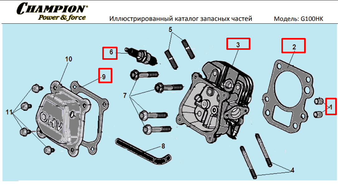 1 | Головка цилиндра | G100HK Двигатель Чемпион | Поставка по России | Магазин-Сервис в СПБ |