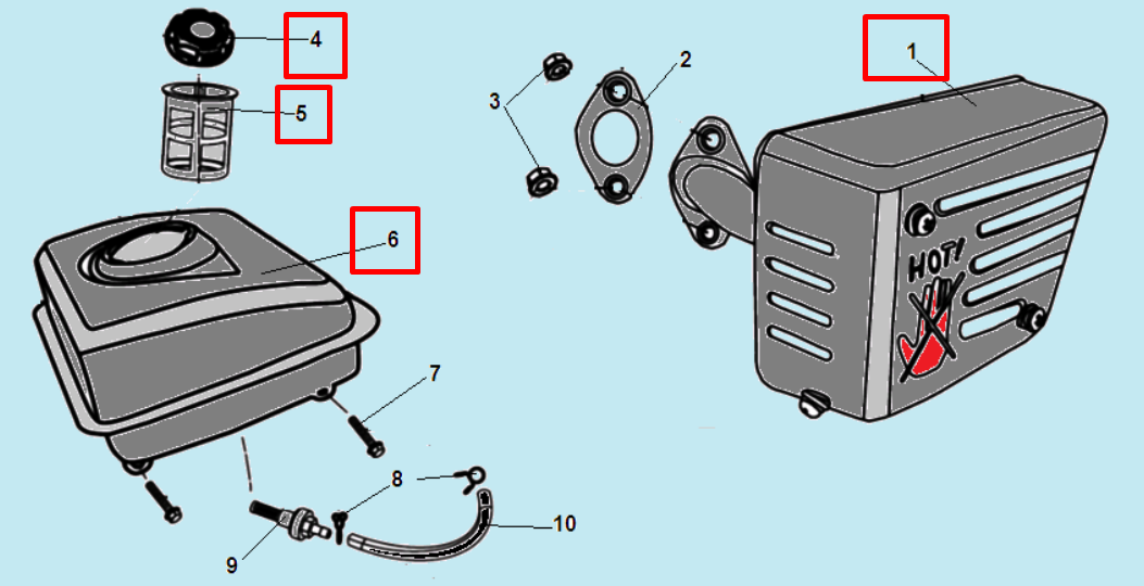 10 | Глушитель, Бак топливный | G100HK Двигатель Чемпион | Поставка по России | Магазин-Сервис в СПБ |