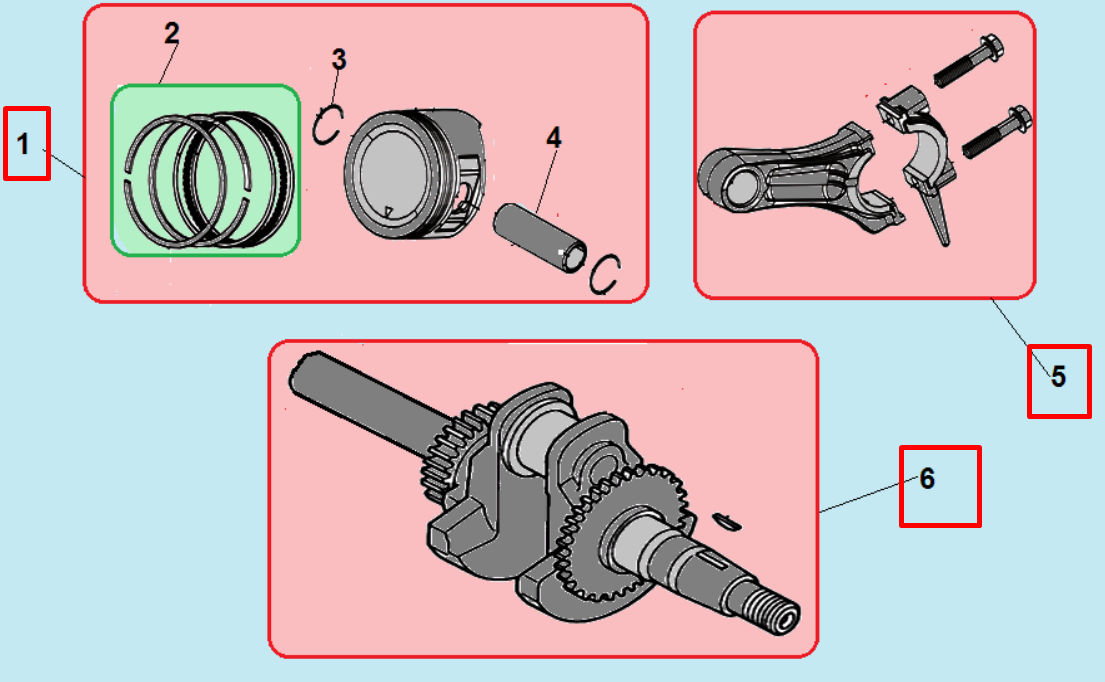 4 | Коленвал, Поршень, Шатун | G100HK Двигатель Чемпион | Поставка по России | Магазин-Сервис в СПБ |