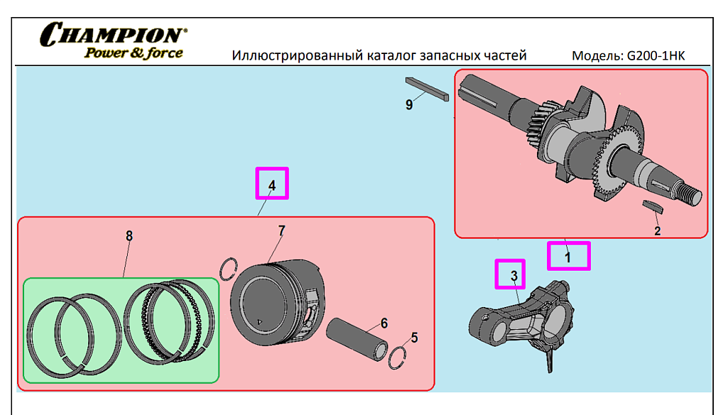 Двигатель CHAMPION (6,5лс/4,8кВт 196см? 19мм шпонка 14,7кг) |