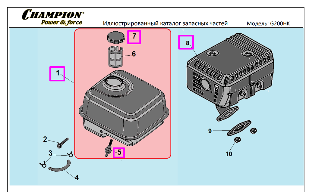 Двигатель CHAMPION (6,5лс/4,8кВт 196см? 19мм шпонка 15,4кг) |