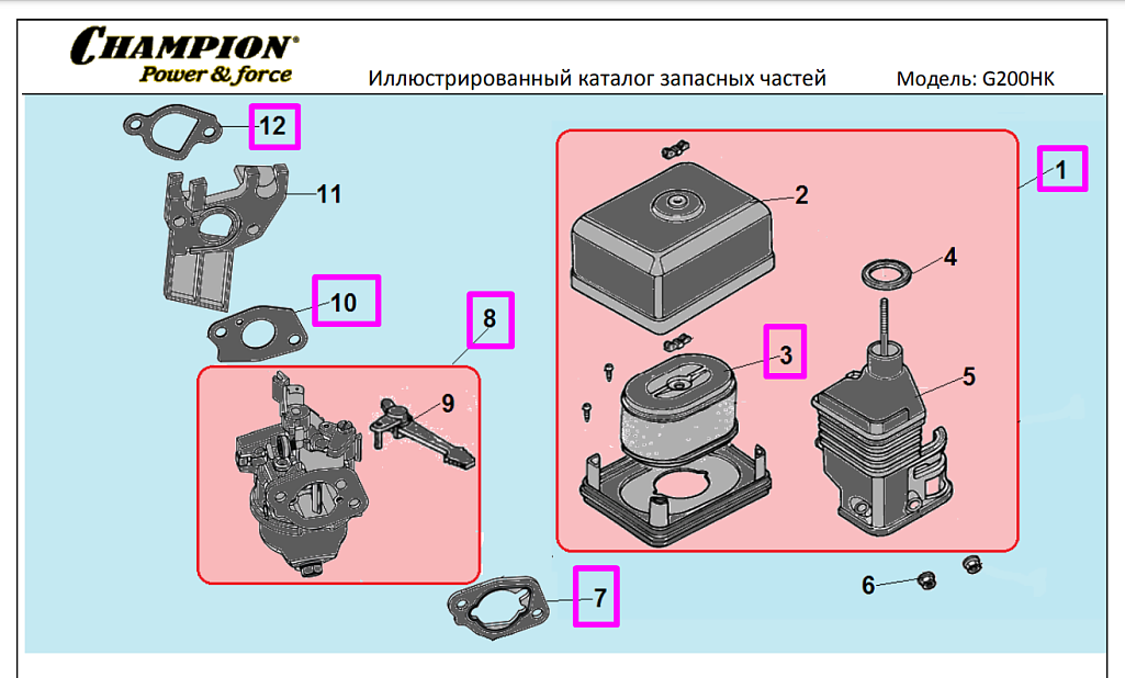 Двигатель CHAMPION (6,5лс/4,8кВт 196см? 19мм шпонка 15,4кг) |