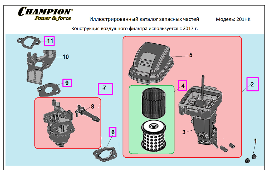 Двигатель CHAMPION (6,5лс/4,8кВт 196см? 20мм шпонка 15,4кг) |