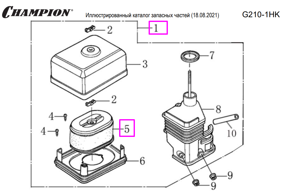 11 | Корпус фильтра в сборе | G210-1HK Двигатель Чемпион | Поставка по России | Магазин-Сервис в СПБ |
