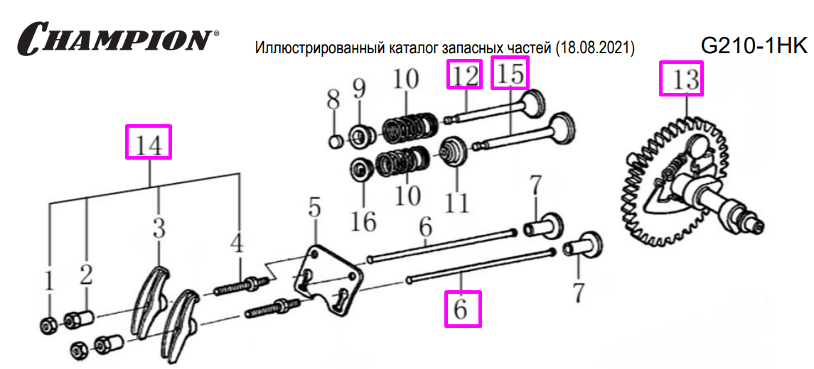 5 | Распредвал | G210-1HK Двигатель Чемпион | Поставка по России | Магазин-Сервис в СПБ |