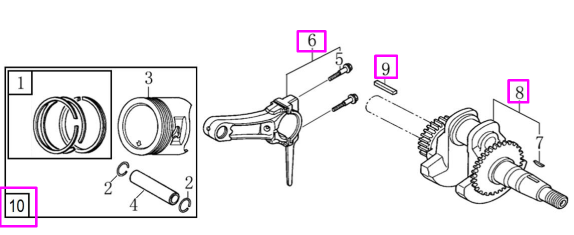 4 | Коленвал, Поршень, Шатун | G210-1HK Двигатель Чемпион | Поставка по России | Магазин-Сервис в СПБ |
