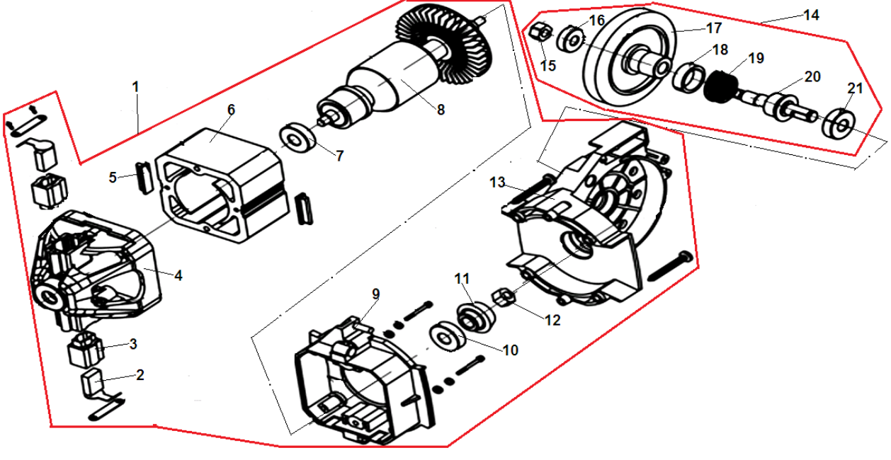 2 ЯКОРЬ - СТАТОР - ЩЕТКИ - ШЕСТЕРНЯ | Запчасти для электропилы чемпион 324N-18 | Поставка по России | Магазин-Сервис в СПБ |