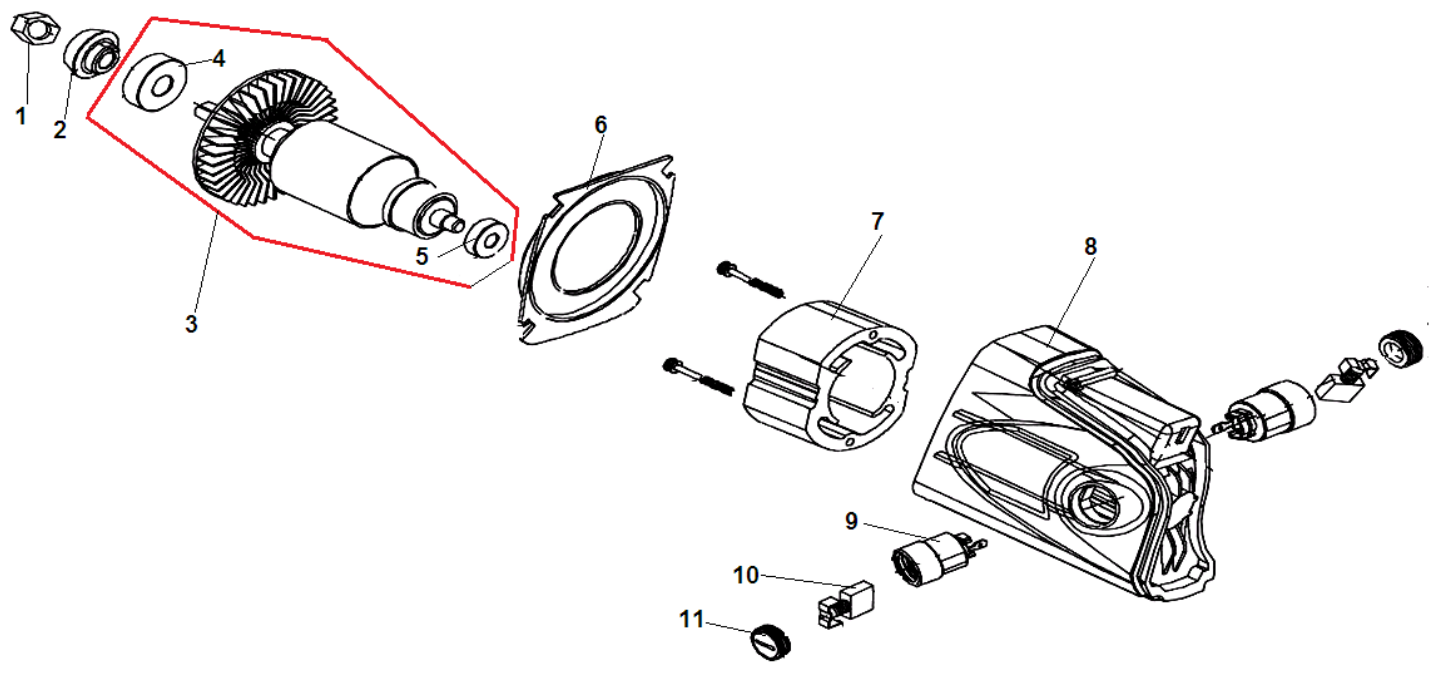 2 ЯКОРЬ - СТАТОР - ЩЕТКИ | Запчасти для электропилы чемпион 422-18 | Поставка по России | Магазин-Сервис в СПБ |