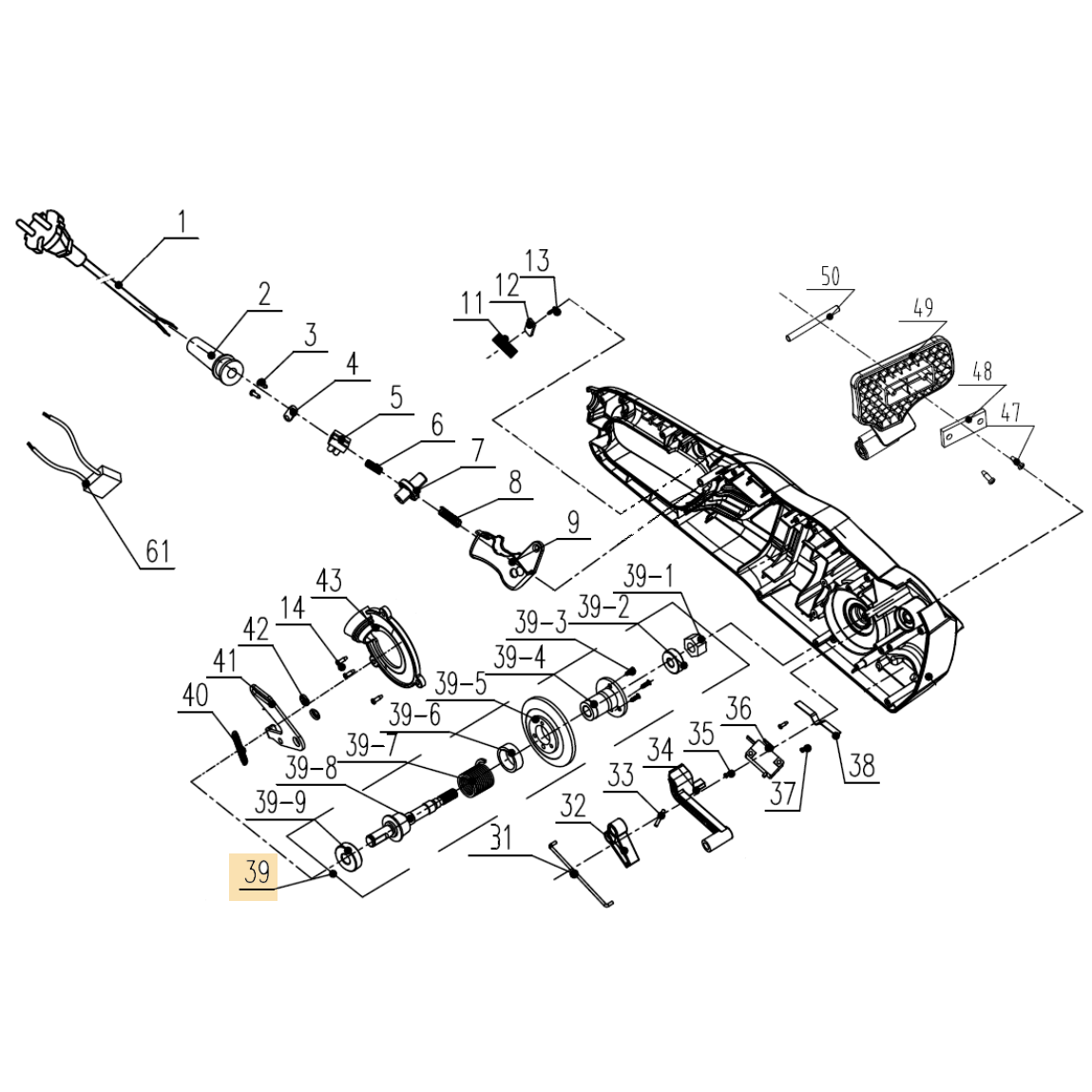 3 ВЫКЛЮЧАТЕЛЬ - ШНУР ПИТАНИЯ | Запчасти для электропилы чемпион 522N-18 | Поставка по России | Магазин-Сервис в СПБ |