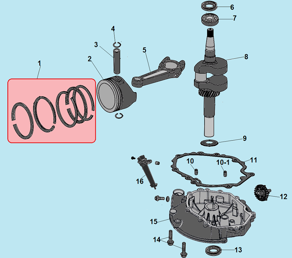 9 ПОРШЕНЬ - КОЛЕНВАЛ - КОЛЬЦА | Запчасти для газонокосилки чемпион LM4630 | Поставка по России | Магазин-Сервис в СПБ |