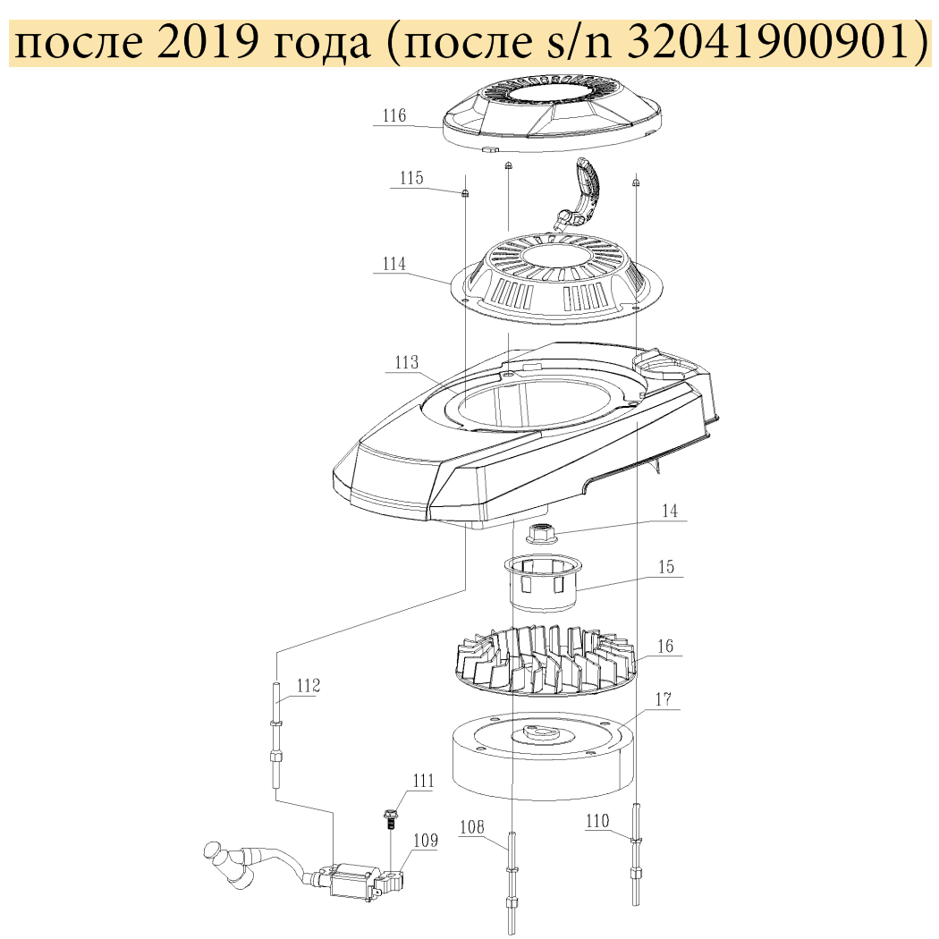 11 | СТАРТЕР - МАГНЕТО - МАХОВИК | Запчасти для газонокосилки чемпион | LM4630 после 2019 года | после номера s/n 32041900901 | Поставка по России | Магазин-Сервис в СПБ |