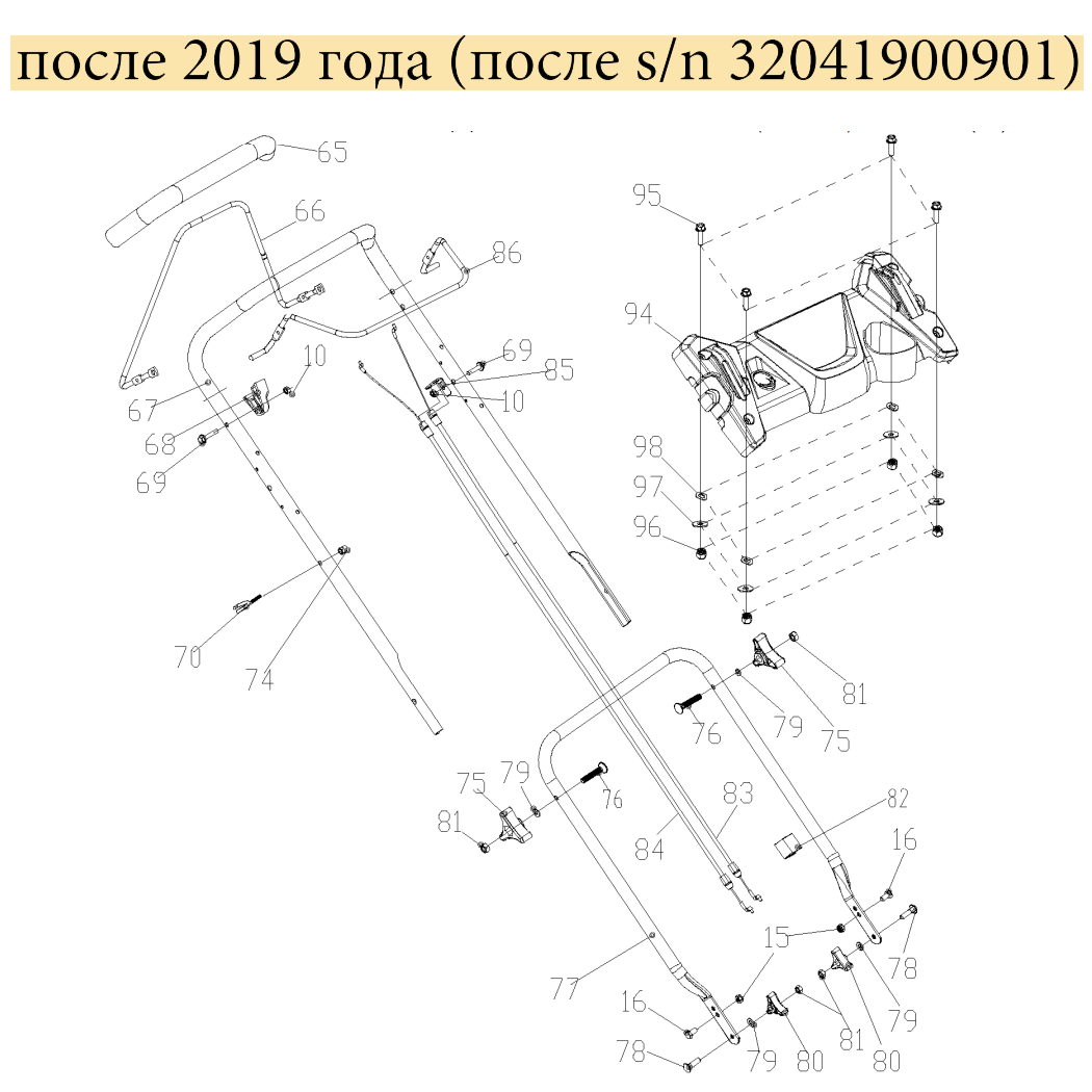 4 | ТРОС - РУЧКА | Запчасти для газонокосилки чемпион | LM4630 после 2019 года | после номера s/n 32041900901 | Поставка по России | Магазин-Сервис в СПБ |