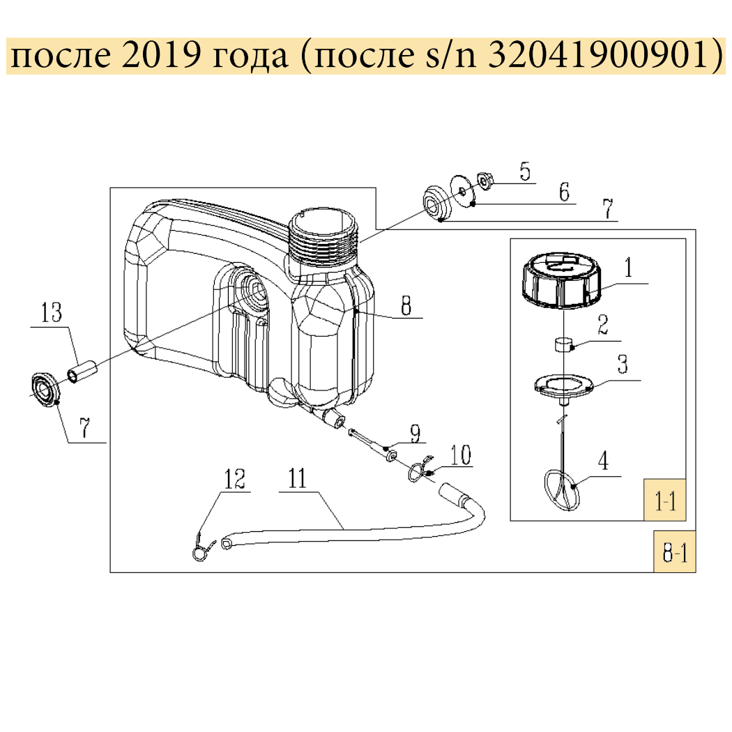 10 | БАК - ПРОБКА - ШЛАНГ | Запчасти для газонокосилки чемпион | LM4630 после 2019 года | после номера s/n 32041900901 | Поставка по России | Магазин-Сервис в СПБ |