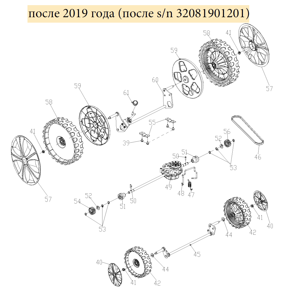 2 | КОЛЕСА - РЕДУКТОР - РЕМЕНЬ | Запчасти для газонокосилки чемпион | LM5131 после 2019 года | после номера s/n 32081901201 | Поставка по России | Магазин-Сервис в СПБ |