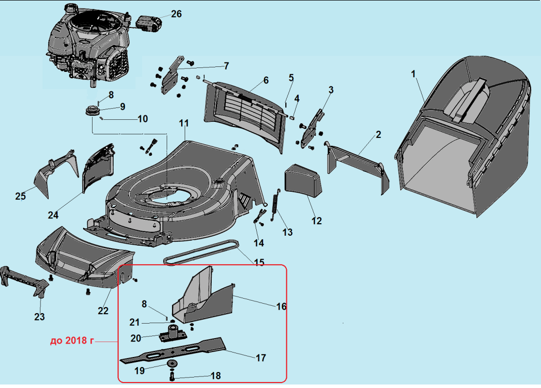 1 НОЖ - АДАПТЕР - РЕМЕНЬ - КОРПУС | Запчасти для газонокосилки чемпион LM5347EBS | Поставка по России | Магазин-Сервис в СПБ |