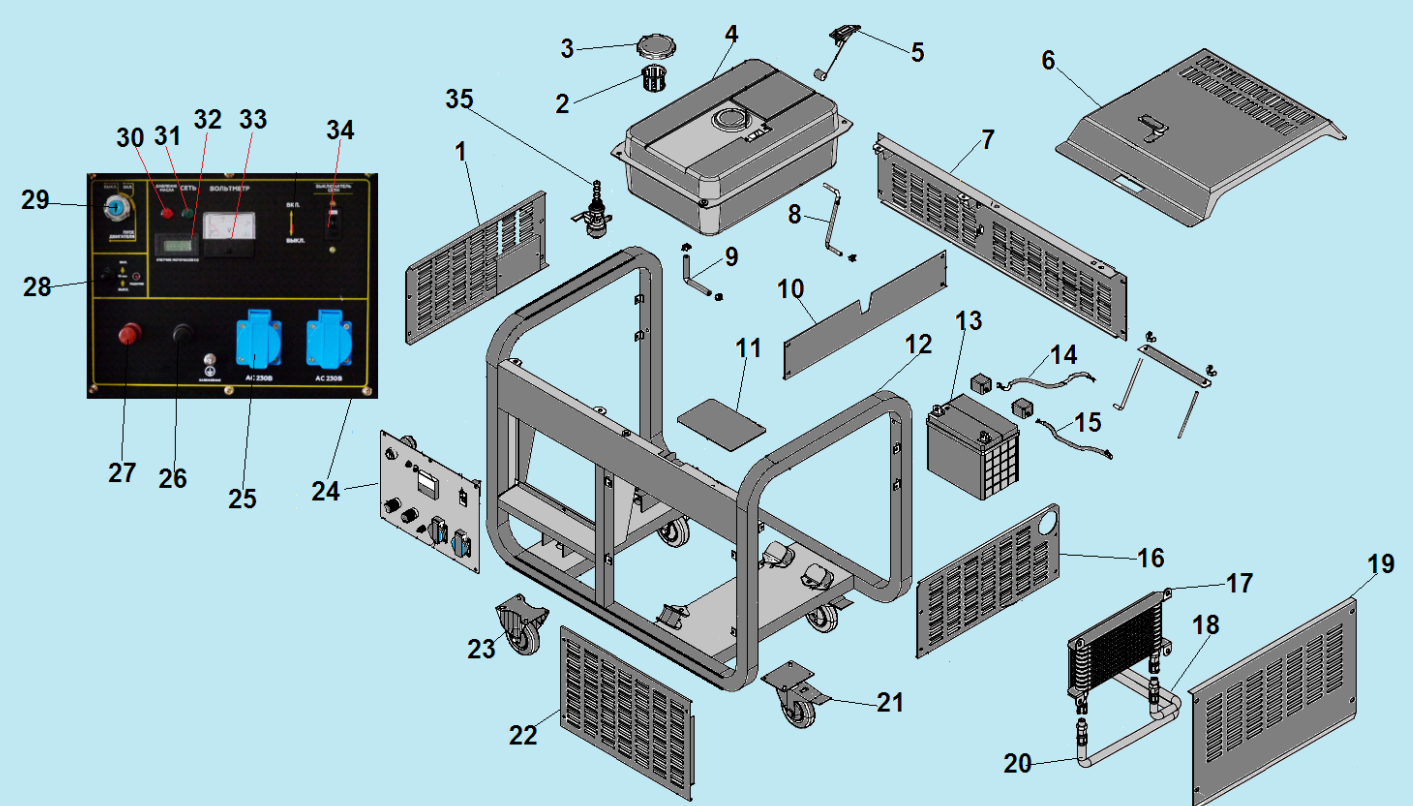2 БАК - АККУМУЛЯТОР | Запчасти для генератора чемпион DG10000E | Поставка по России | Магазин-Сервис в СПБ |