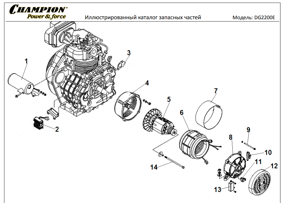 7 | Статор - Ротор - Блок AVR | Запчасти для генератора чемпион | DG2200E | Поставка по России | Магазин-Сервис в СПБ |