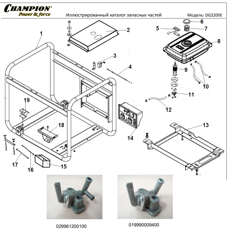 1 | Картер | Запчасти для генератора чемпион | DG2200E | Поставка по России | Магазин-Сервис в СПБ |