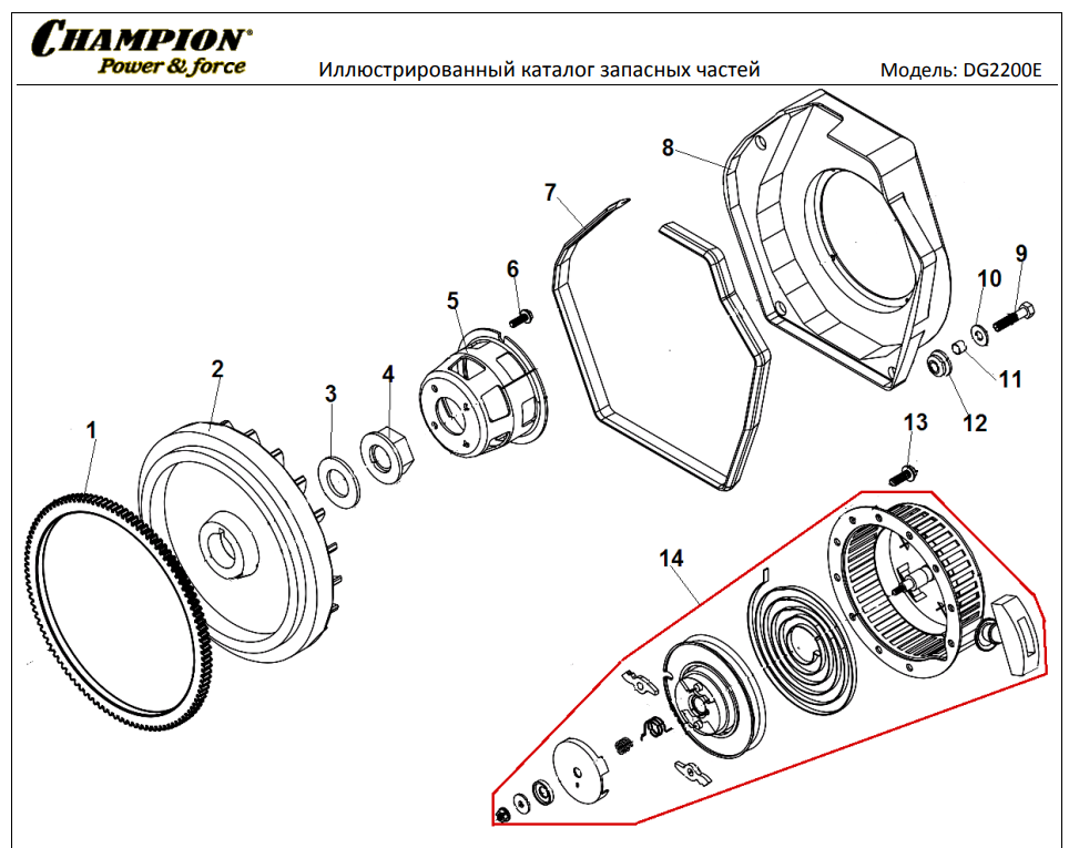 6 | Стартер | Запчасти для генератора чемпион | DG2200E | Поставка по России | Магазин-Сервис в СПБ |