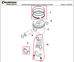 3 | Поршень - Шатун | Запчасти для генератора чемпион | DG2200E | Поставка по России | Магазин-Сервис в СПБ |