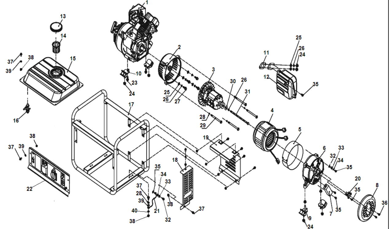 1 ЯКОРЬ - СТАТОР - БЛОК AVR - БАК - АККУМУЛЯТОР | Запчасти для генератора чемпион GG1300 | Поставка по России | Магазин-Сервис в СПБ |