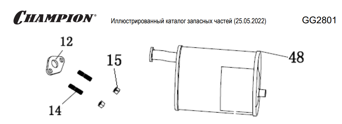 12 | Глушитель | Запчасти для генератора чемпион | GG2801| Поставка по России | Магазин-Сервис в СПБ |