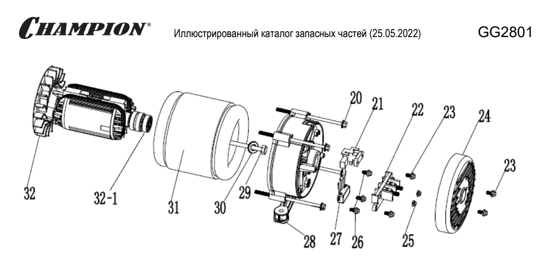 1 | Статор - Ротор - Блок AVR | Запчасти для генератора чемпион | GG2801| Поставка по России | Магазин-Сервис в СПБ |