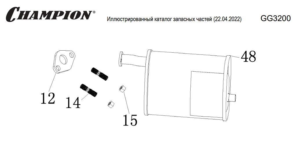 12 | Глушитель | Запчасти для генератора чемпион | GG3200 | Поставка по России | Магазин-Сервис в СПБ |