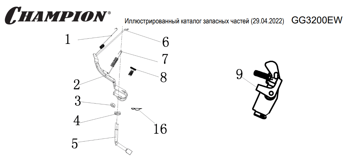 13 | Рычаг регулятора оборотов | Запчасти для генератора чемпион | GG3200EW | Поставка по России | Магазин-Сервис в СПБ |