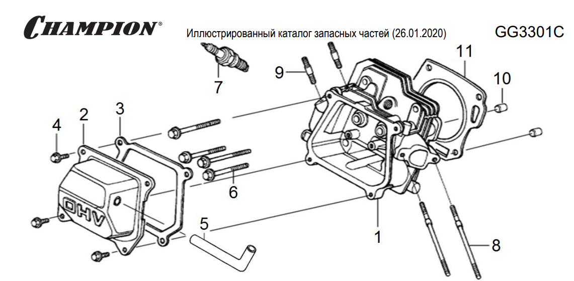 6 | Головка цилиндра | Запчасти для генератора чемпион | GG3301C | после 2019 года | после s/n 30051900319 | Поставка по России | Магазин-Сервис в СПБ |