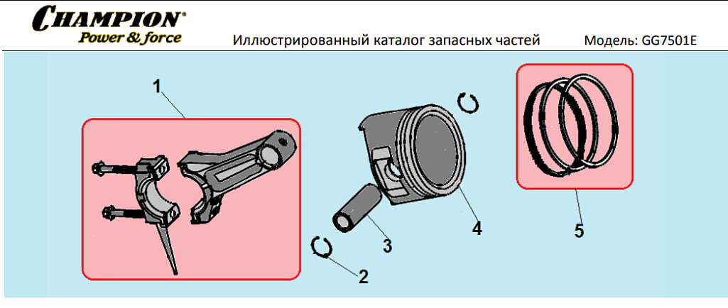 5 | Поршень - Шатун | Запчасти для генератора чемпион | GG7501E | обновлена | Поставка по России | Магазин-Сервис в СПБ |