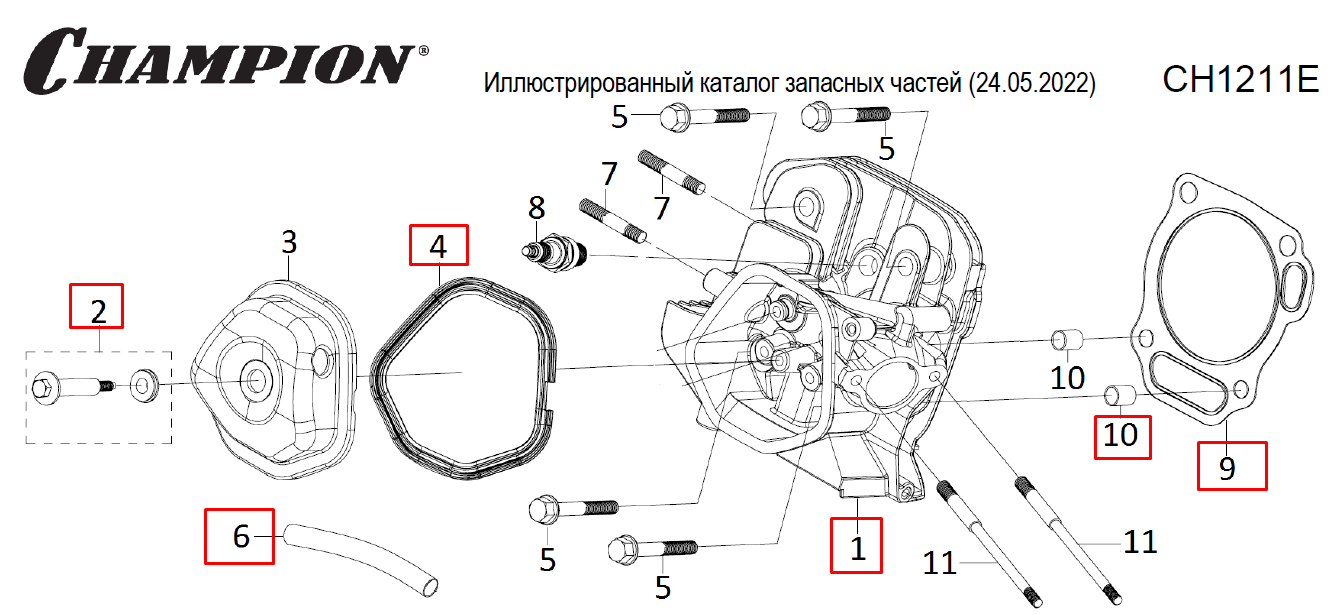 5 | Головка цилиндра | CH1211E измельчитель Чемпион | Запчасти, сервис, ремонт