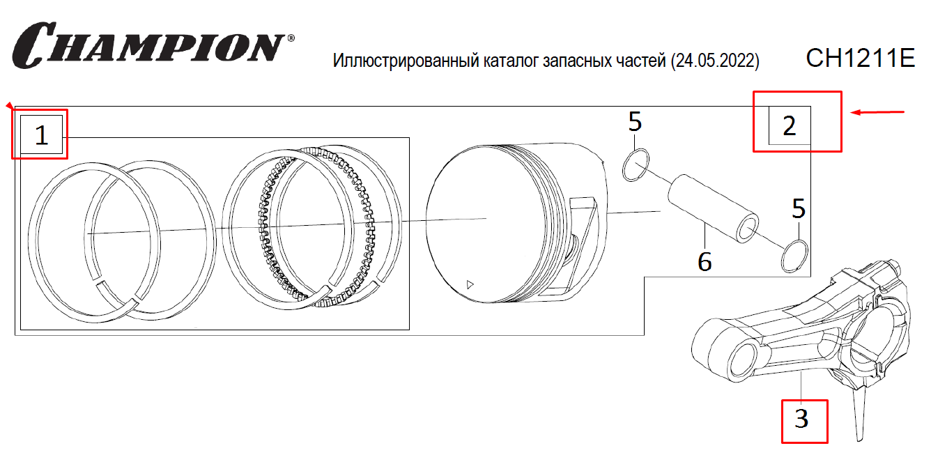 9 | Поршень, Шатун | CH1211E измельчитель Чемпион | Запчасти, сервис, ремонт
