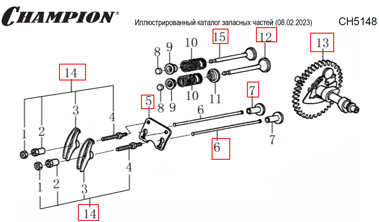5 | Головка цилиндра | CH5148 измельчитель Чемпион | Запчасти, сервис, ремонт