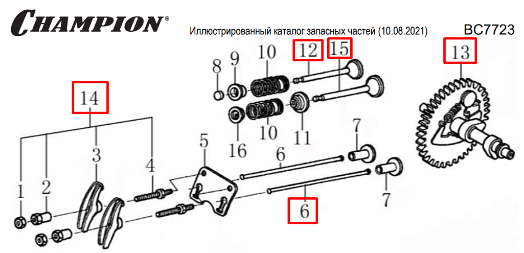 13 | КЛАПАНА | Запчасти для культиватора, мотоблока чемпион | BC7723 | Поставка по России | Магазин-Сервис в СПБ |