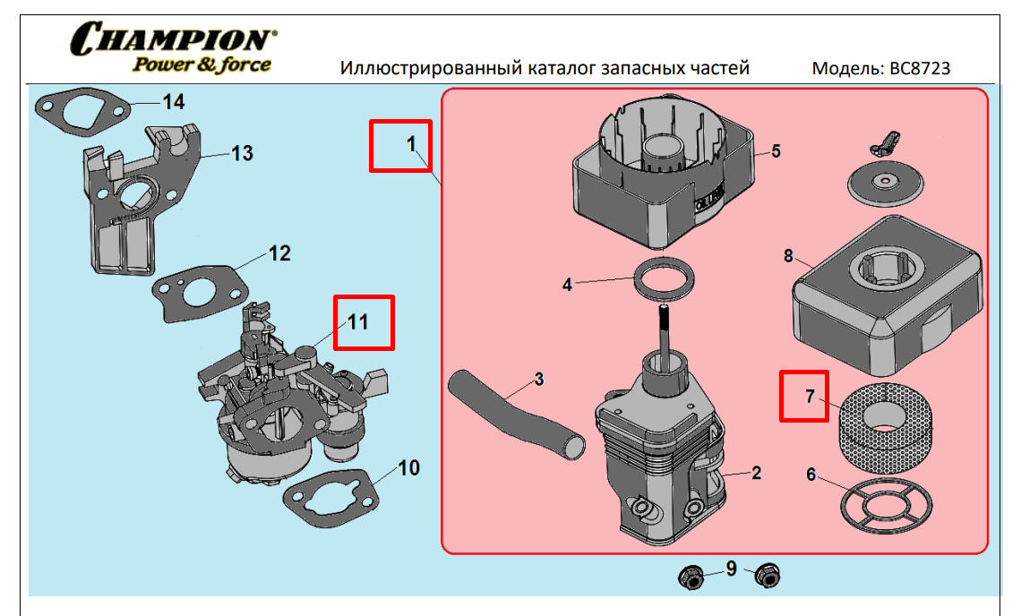 15 | КАРБЮРАТОР - ВОЗДУШНЫЙ ФИЛЬТР | Запчасти для культиватора, мотоблока чемпион | BC8723 | Поставка по России | Магазин-Сервис в СПБ |