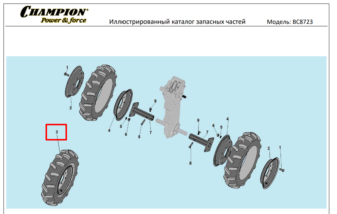 3 | КОЛЕСА | Запчасти для культиватора, мотоблока чемпион | BC8723 | Поставка по России | Магазин-Сервис в СПБ |