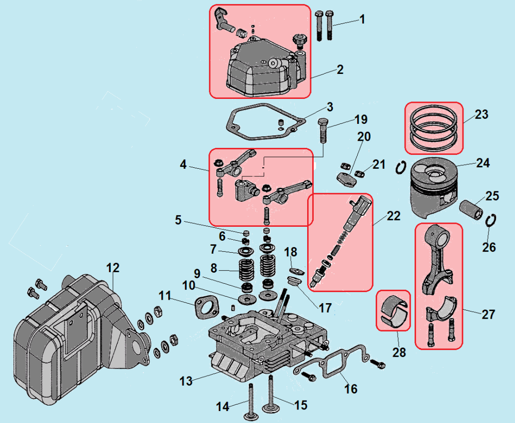 13 ПОРШЕНЬ - ЦИЛИНДР -КОЛЕНВАЛ- КОЛЬЦА | Запчасти для культиватора, мотоблока чемпион DC1163E | Поставка по России | Магазин-Сервис в СПБ |