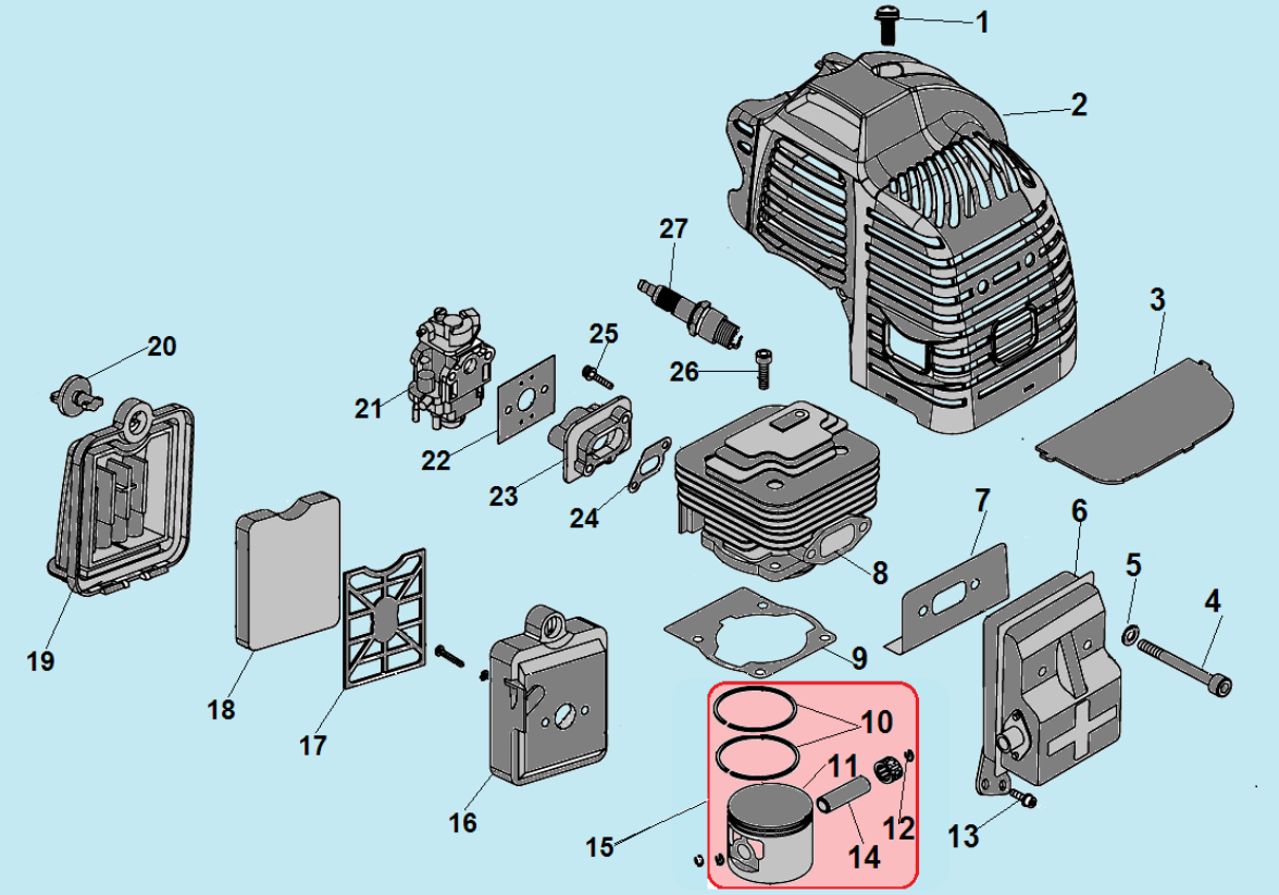 3 КАРБЮРАТОР - ПОРШЕНЬ - ЦИЛИНДР - КАРТЕР | Запчасти для культиватора, мотоблока чемпион GC252 | Поставка по России | Магазин-Сервис в СПБ |