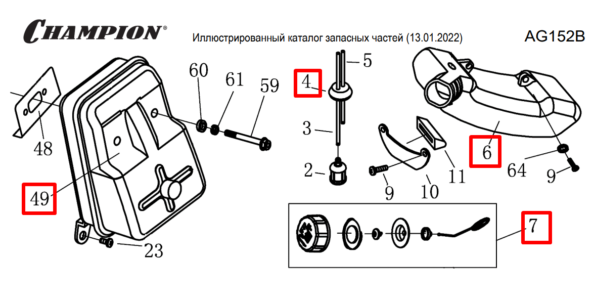 7 | ГЛУШИТЕЛЬ | Запчасти для мотобура чемпион | AG152B | Поставка по России | Магазин-Сервис в СПБ |