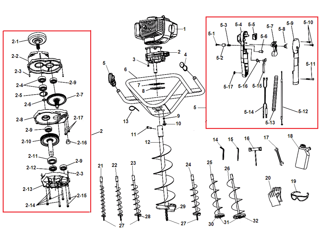 2 РЕДУКТОР - ШЕСТЕРНИ - РУЧКА - ТРОС ГАЗА | Запчасти для мотобура чемпион AG252 | Поставка по России | Магазин-Сервис в СПБ |